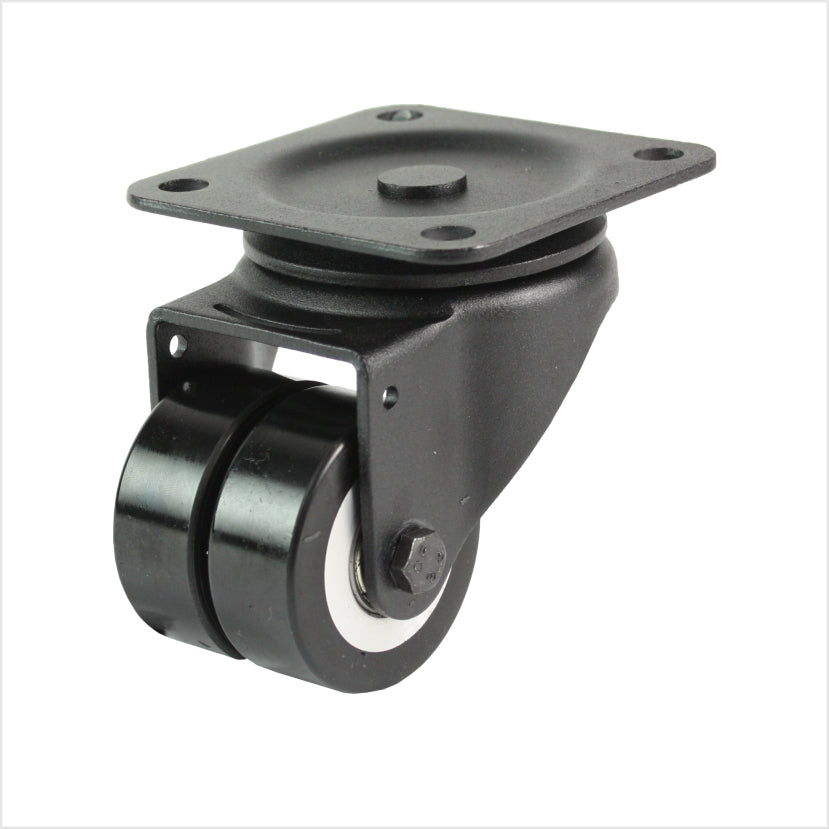 50 mm mini-Schwerlastrolle - schwarze Doppel-Lenkrolle flach & ballig