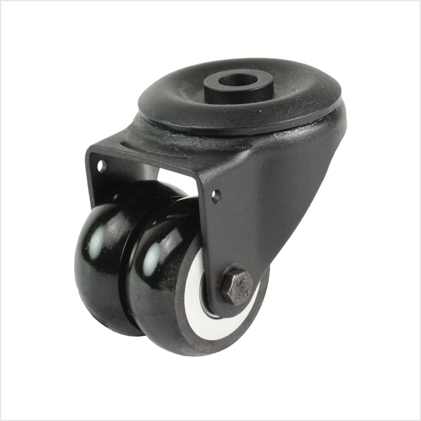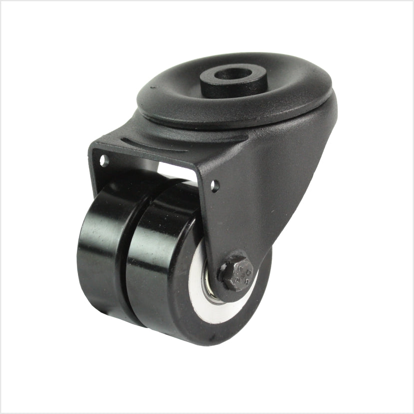 50 mm mini-Schwerlastrolle - schwarze Doppel-Lenkrolle mit Rückenloch flach & ballig