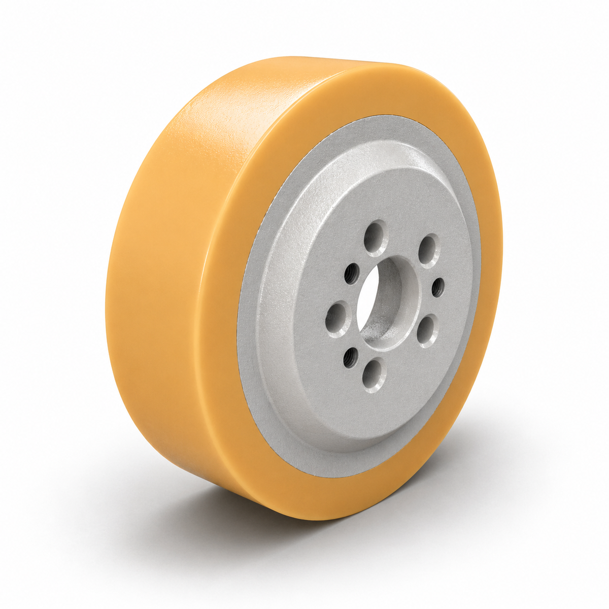 Black heavy-duty turntable with three convex PU casters for high load capacity and a discreet appearance. Suitable for stage, trade fair and industrial applications.