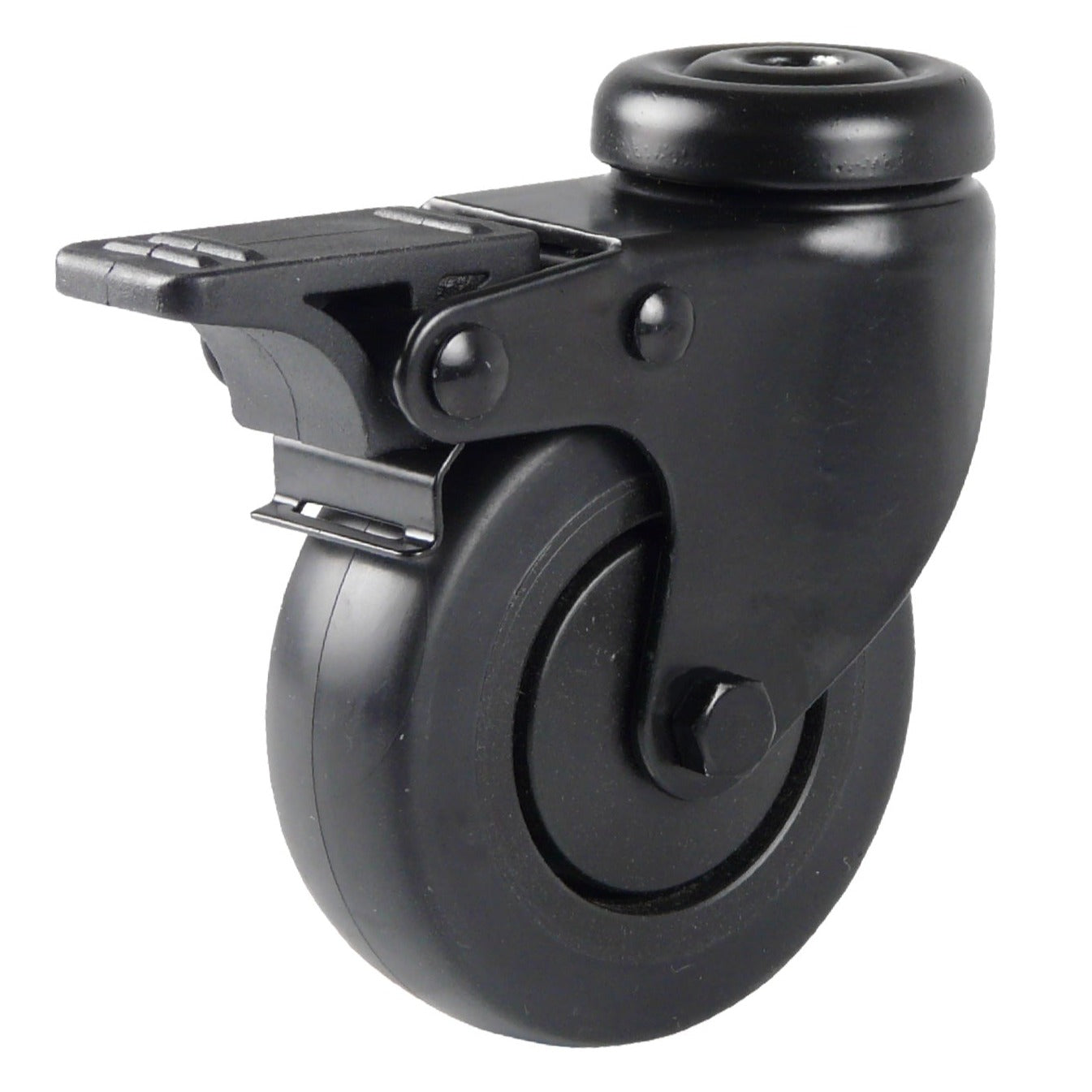 75 mm - Black swivel castor with bolt hole and brake